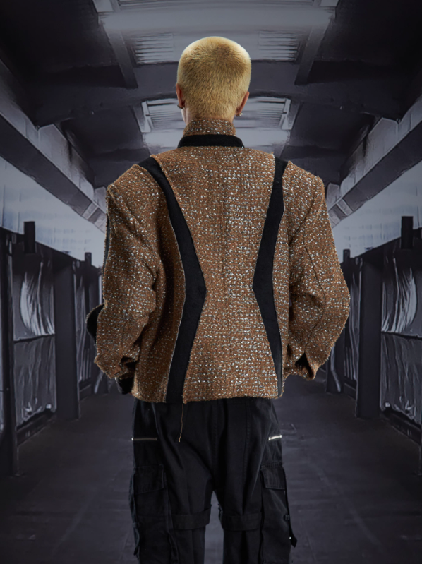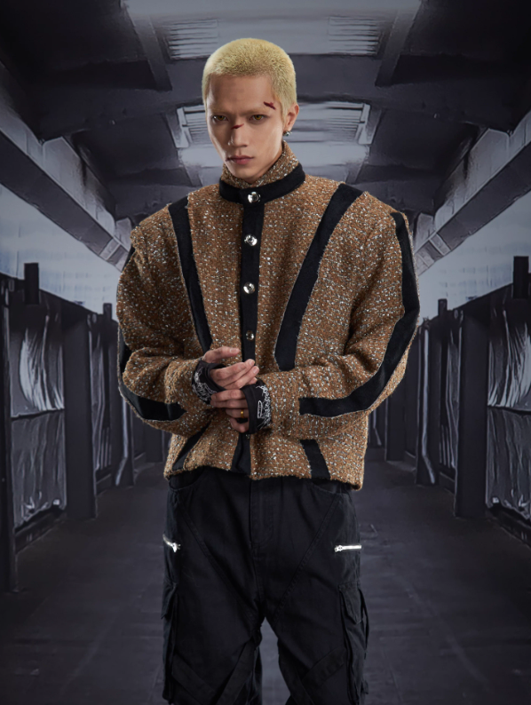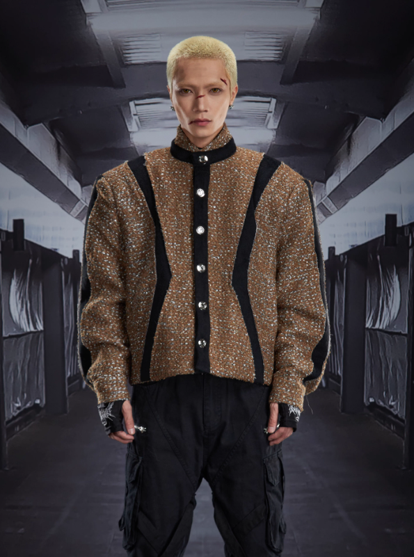 Cut-Out Deconstructed Patchwork Starry Stand Collar Padded Jacket